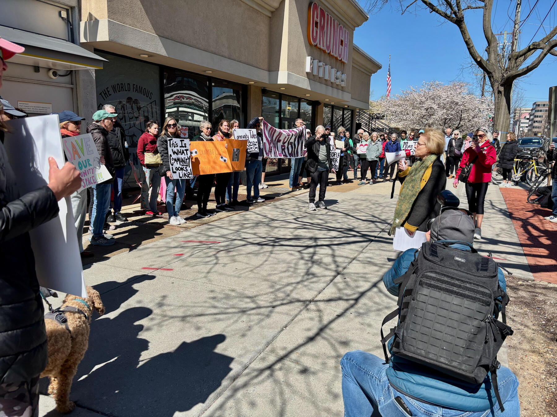 Within days, our community organized. We launched a petition that gathered hundreds of signatures, built an email list of over 500 members and supporters, and created a website. Fox 5 DC covered our story. Over 60 neighbors rallied outside the gym on March 24, refusing to scatter quietly.Volunteers collected signatures, handed out flyers, and spread the word across neighborhood listservs and social media. We wrote hand-delivered letters to Onelife CEO Ori Gorfine and private equity owner Josh Harris. We spoke with journalists, worked with the Friendship Heights Alliance and Rodman's, connected with Tenleytown Main Street, and reached out to council members.We explored every option. We tracked down Crunch corporate contacts and franchisees to ask if they would take over the location. We looked into forming a nonprofit community gym or a cooperative run by members. We contacted the building landlord and worked with gym operators who wanted to expand.Member investors came forward and tried to negotiate leasing or purchasing the equipment directly from Onelife — which would have made many of these paths possible — but Onelife refused. They never responded to our request for a reversal or a delay, but instead apologized and offered a free month at one of their large corporate locations.